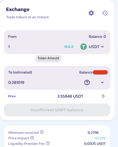 PancakeSwap9. If everything is correct, then your screen shall look like this. To buy tone select currency for which you wish to buy REX token in the upper line. In the bottom line - in token search field - indicate REX token address - 0xdac17f958d2ee523a2206206994597c13d831ec7. Press "Import" button. Confirm your choice in the next window.